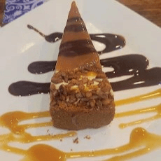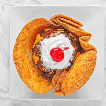 Lightly fried chimichanga cheesecake topped with chocolate syrup and caramel. Served with a side of ice cream