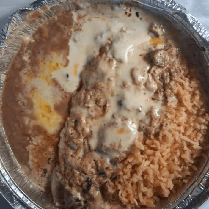 A bed of rice or French fries with your choice of meat, and cheese dip on top. Fajita style +$2.99