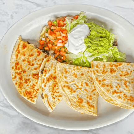 One burrito, one shredded beef quesadilla & one Chile relleno