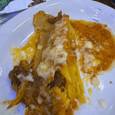 Your choice beef, chicken or cheese. Topped with enchilada sauce